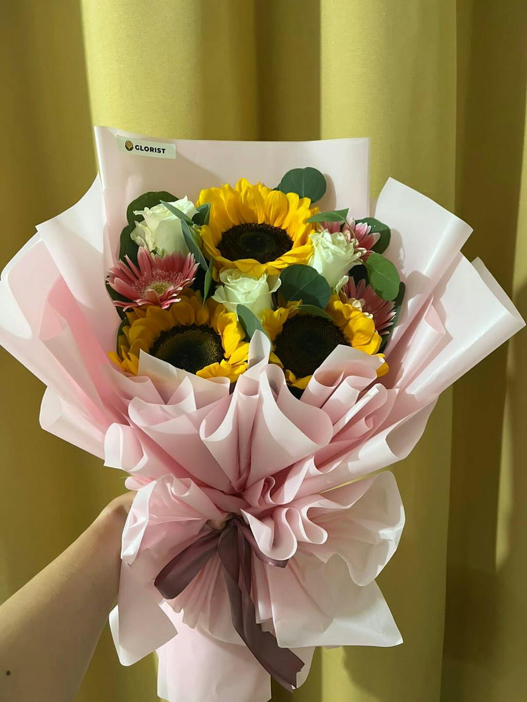 Our flower bouquets start at ₱999. Prices vary depending on the bouquet design, flower type (e.g., Rose, Sunflower, Stargazer, Tulip, Carnation, Gerbera, Ecuadorian Rose, China Rose, Gypsophila, Lisianthus, Dried Flowers), and any additional packages you select. We offer a range of options from affordable to premium designs.